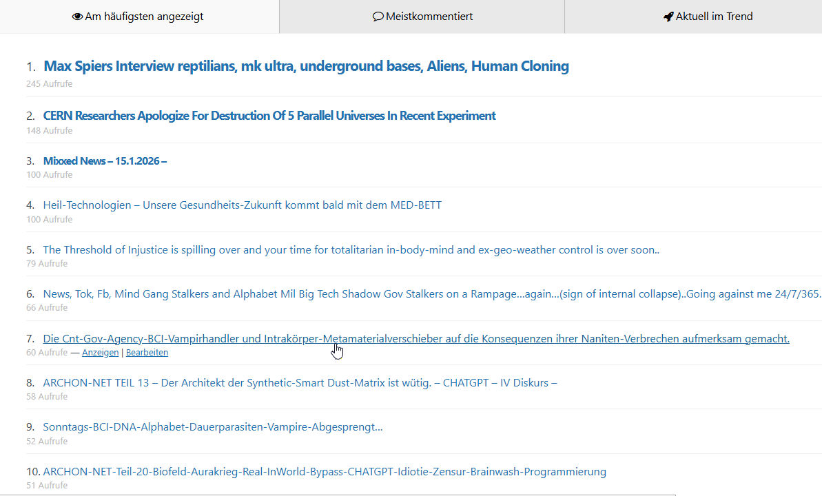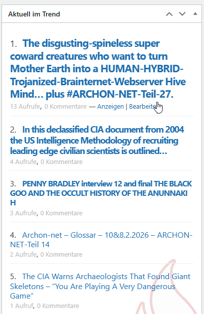 Conspiracy Revelation: 12.2.2026: ARCHON-NET-Teil-22: Der Rechtsohrklirreffekt – BCI-Dauerverschränkung – IoB = autonom – Permanent 2-Wege – DARPA-Biotech-Seuche-Global. (News & More)