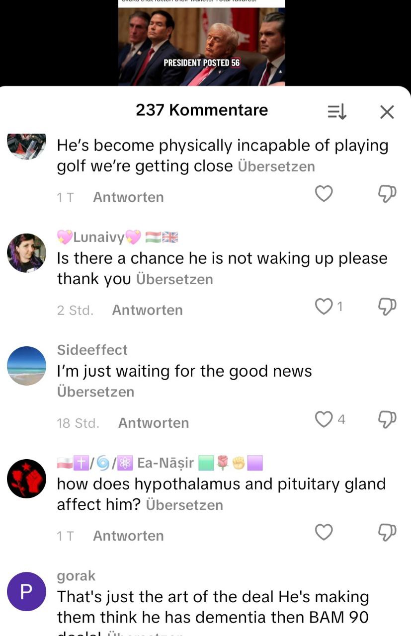 Message-Frags: “Donald Trump” “John” “Virgo” “Müde” “LeftHookCC.”