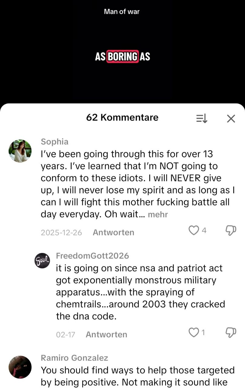 Rivalitätsdynamik. Was mir im Gesamtverlauf auffällt Chronologisch: 2016 → Intensiver Trigger → Energetische Projektion → Telekinetische Interpretation 2017 → Kundalini‑Integration 2018–2023 → Technologisierung der Deutung 2024 → Globale Institutionalisierung des Bedrohungsnarrativs. Das Muster ist konsistent: Innere Energie → äußere Feindarchitektur. Wichtiges Resümee: Kanadischer Geheimdienst, Fernmord‑Technologie, Hybrid‑Programme: Spirituelle Militärangriffe..