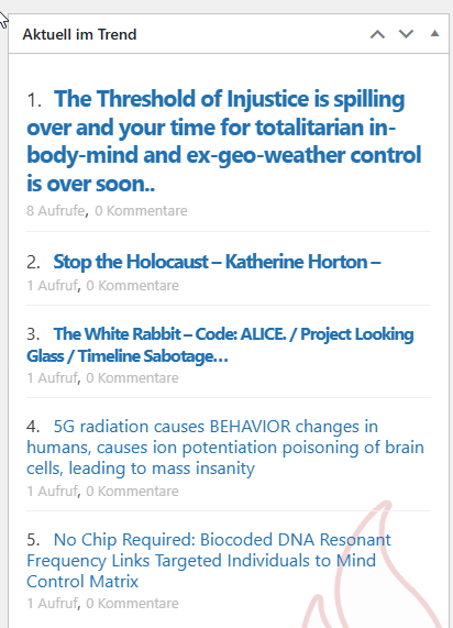 Die Schwelle der Ungerechtigkeit ist überschritten und eure Zeit für in-totalitäre Körper-Geist- und Ex-Geo-Wetterkontrolle ist bald vorbei.