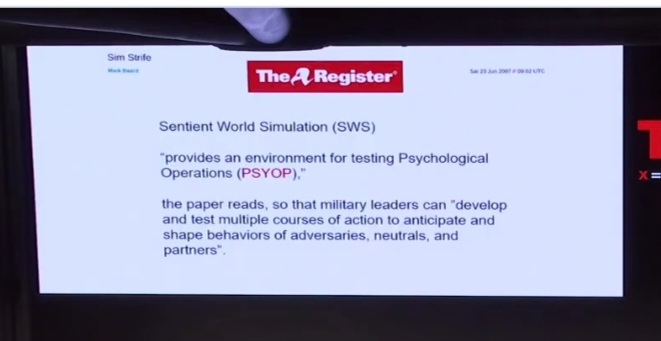 "What we see here is that this is all based on Psychological warfare done by the military intelligence... Disney World..but what we actually have here is a number ..that are sponsored by military industrial corporations...it was an FBI Plan, it was instigated...Trauma-Based Mind Control..during the last war in the concentration camps in Germany they started to perfect the manipulation of a natural mechanism of the mind that shuts out trauma...to keep systematically traumatized someone...they started to make me an obedient slave at first..sensory deprivation...