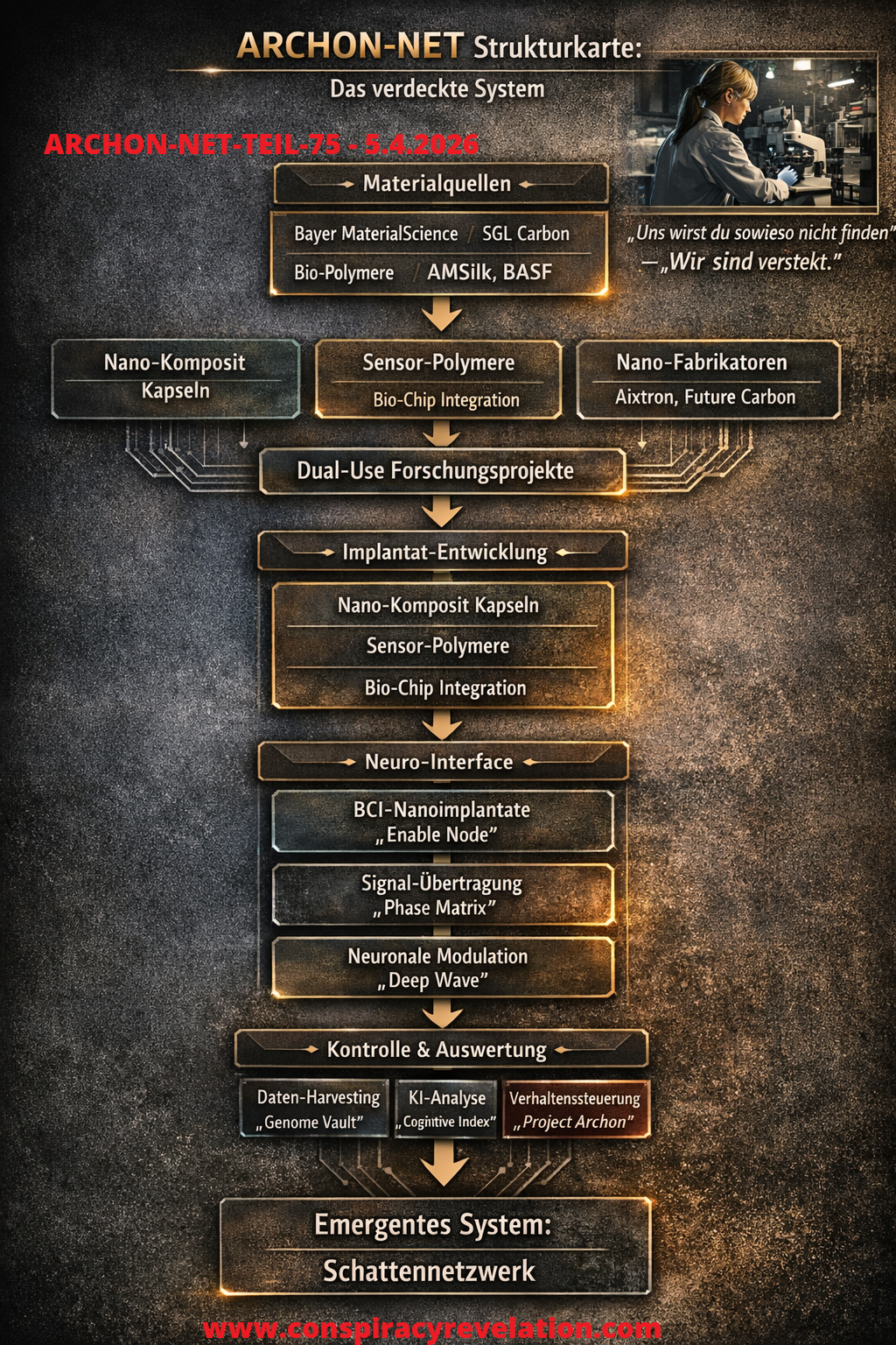 Conspiracy Revelation: 5.4.2026: Archon-Net-Teil-75: Die Biotech-Verschwörung und die heimlichen BCI-DNA Invasoren, Infiltratoren, GenMutatoren und Mind Gang Stalker… Könnte man als Fortsetzung der Rheogene-Verschwörung von Archon-Net-Teil-37 sehen.